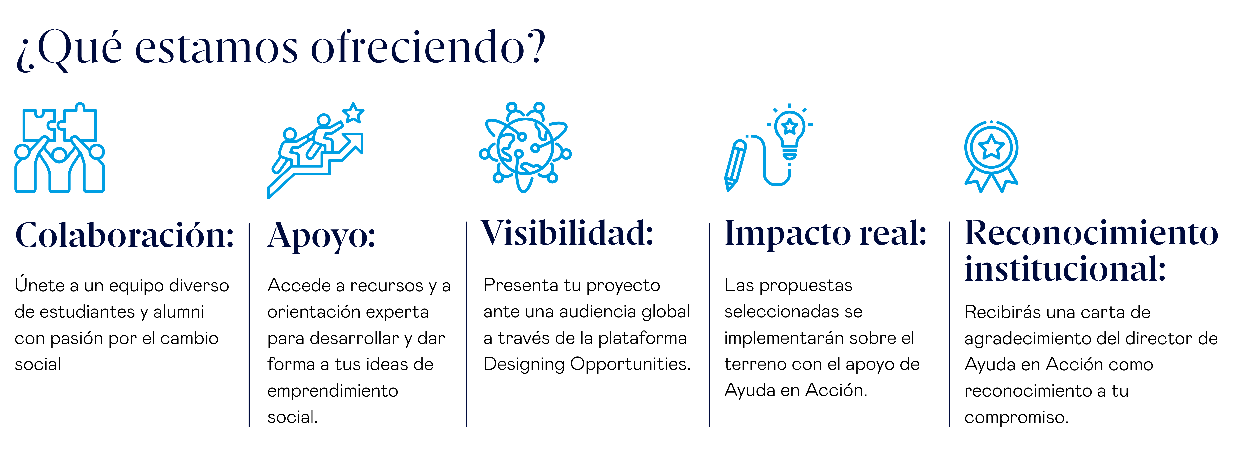 Se adaptarán e incorporarán soluciones del reto previo en Designing Opportunities y desarrollado en colaboración con ESADE Alumni (por ejemplo, el modelo de cooperativa aplicado a las cajas de ahorro y crédito la marca o sello de garantía y calidad en la pesca artesanal o en MiPYMEs a impulsar).